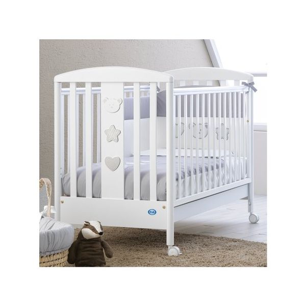 Prodotto Caratteristiche Struttura in legno di faggio massello con truciolare melanimico rifinito con vernice poliuretanica. Ruote in polipropilene con freno. Decori in Forx , Pmmaa serigrafia digitale. Cassetto riutilizzabile sui due lati. Sponde scorrevoli a doppia posizione con possibilità di bloccaggio e dotate di guaina protttiva paramorsi atossica Codifica 2017 Colore Punto colore Birillo Bianco Misure Dimensioni 133 X 73 X 101 cm Sicurezza Consigliato Da 0 mesi Solo uso domestico Interno Imballo Codice articolo 25500 Assortito No Colli 1 Dimensione scatola 132 X 76 X 19 cm Peso 28500 Contenuto Materiale Legno verniciato ad acqua Assemblaggio Da assemblare Pezzi Materasso e tessile non inclusi Batterie No Ruote 4 ruote piroettanti, due con freno, rivestite in gomma Cassetti 1 Chiusura Fisso