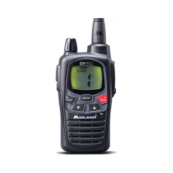 Midland G9 Pro. Utilizzo: Radio mobile professionale (PMR), Quantità di canali: 101 canali, Frequenza di funzionamento: 446.00625 - 446.19375 MHz. Tipo di display: LCD. Tipo batteria: AA, Tecnologia batteria: Nichel-Metallo Idruro (NiMH)